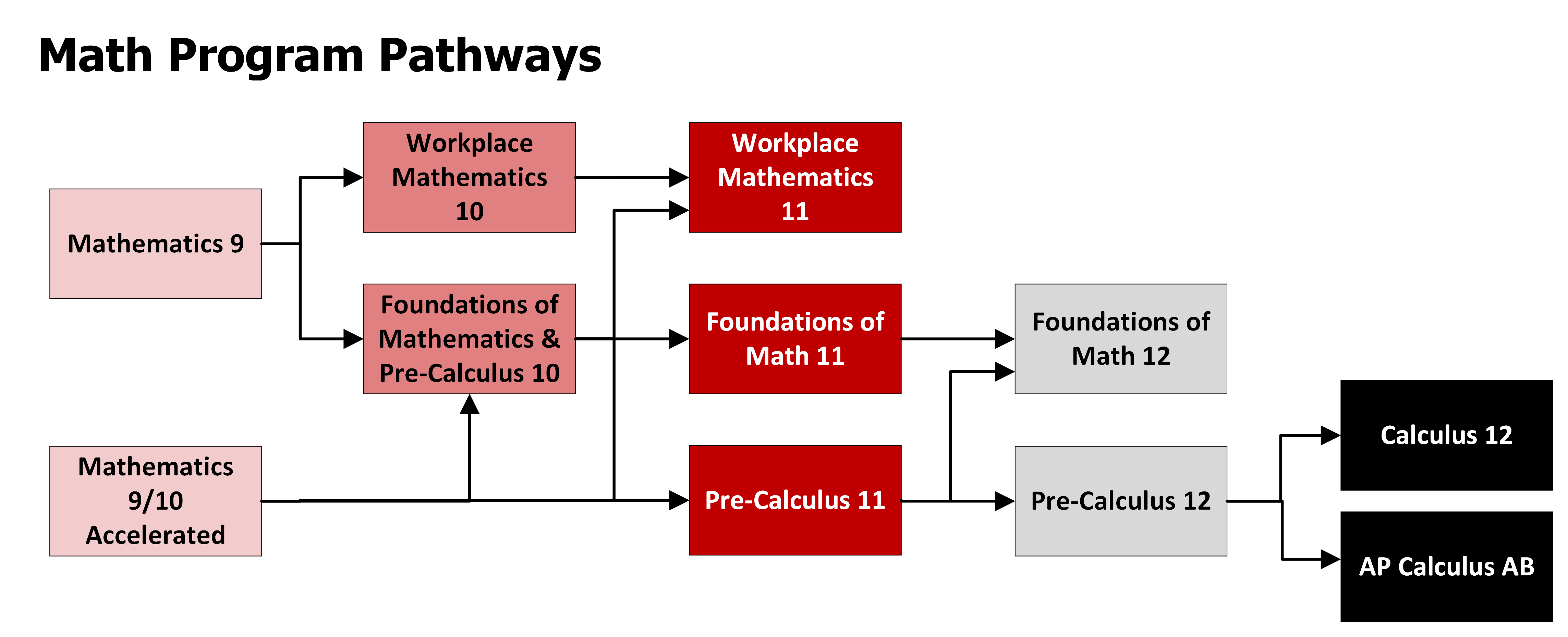 To graduate, students need to take one Mathematics 10 course and one Mathematics course at the Grade 11 or 12 level