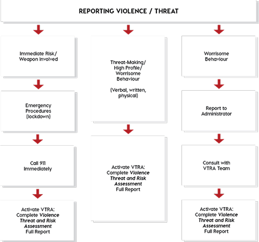 - When any form of threat is made, a threat assessment team will investigate and appropriately enact the Violent Threat/Risk Assessment (VTRA) Protocol. A VTRA Team is made up of individuals who have received threat assessment training.